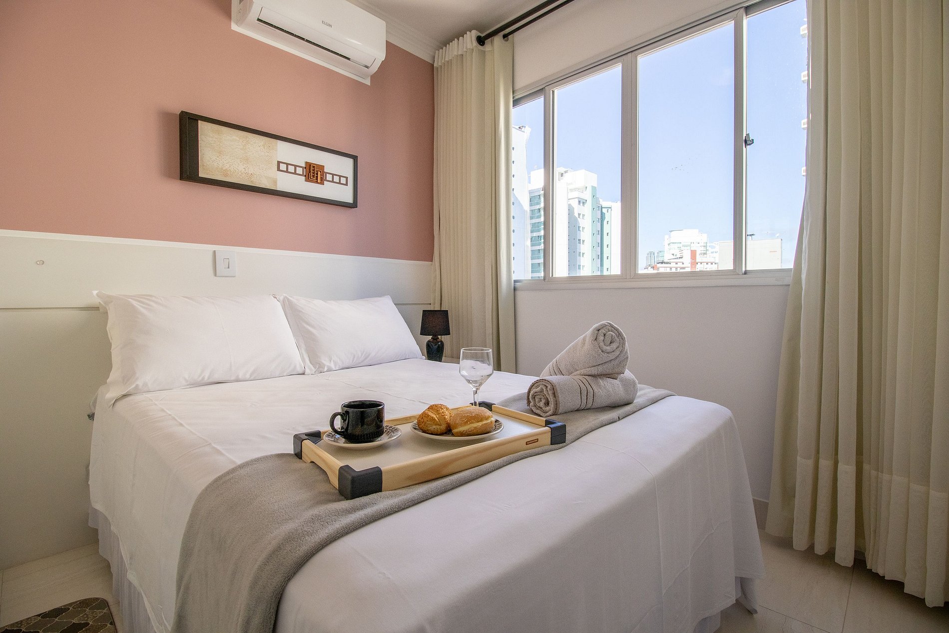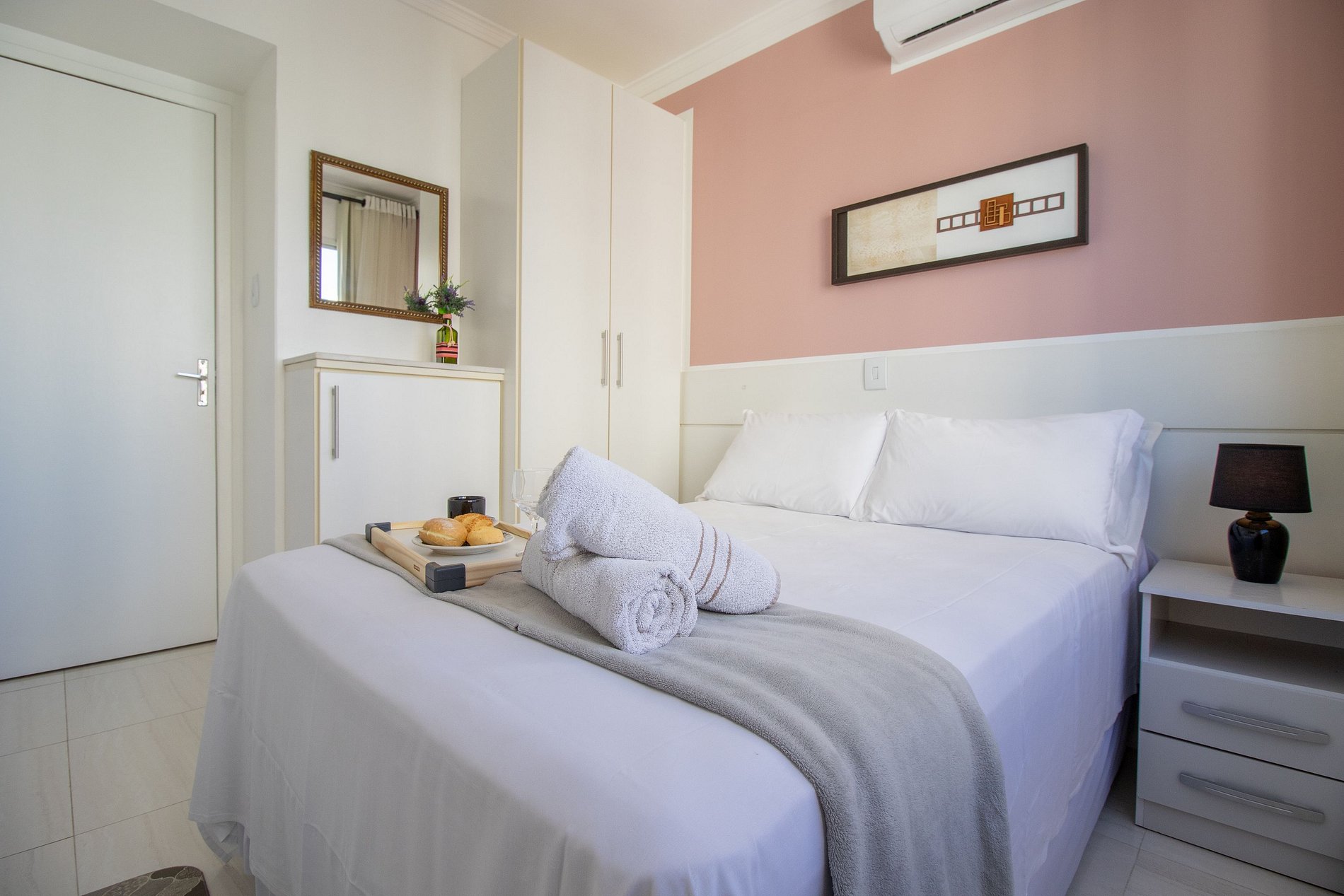 Venha para Balneário e fique hospedado nesse aconchegante espaço uma quadra do mar. Um dormitório com uma cama de casal, sala com dois ambiente e sofá cama. Há internet/WIFI de boa qualidade, itens de cozinha para preparar refeições básicas, liquidificador, sanduicheira. Temos também ferro de passar roupa, secador de cabelo e máquina de lavar. Uma vaga de garagem.