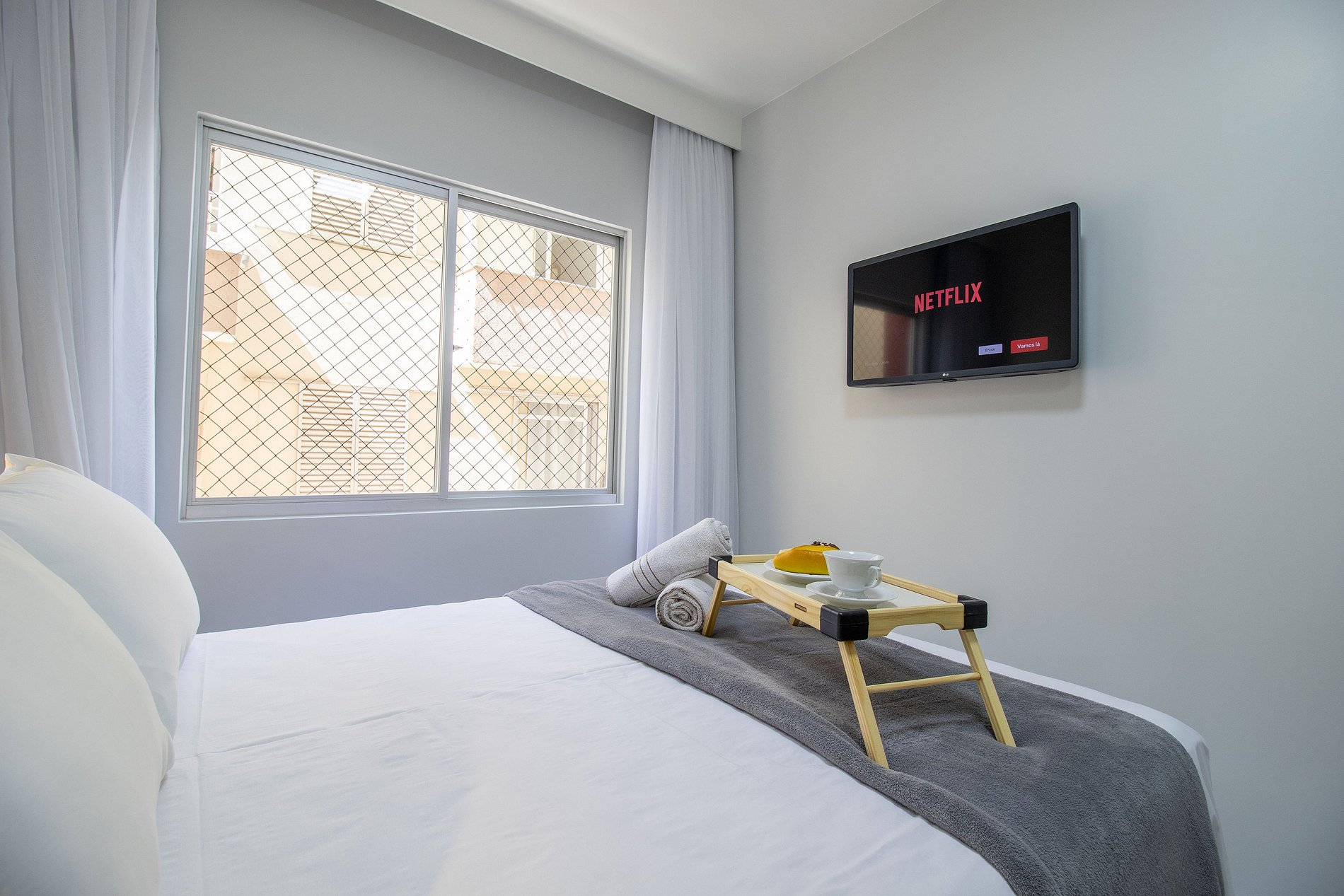 Internet wi-fi de boa velocidade própria do apartamento.
