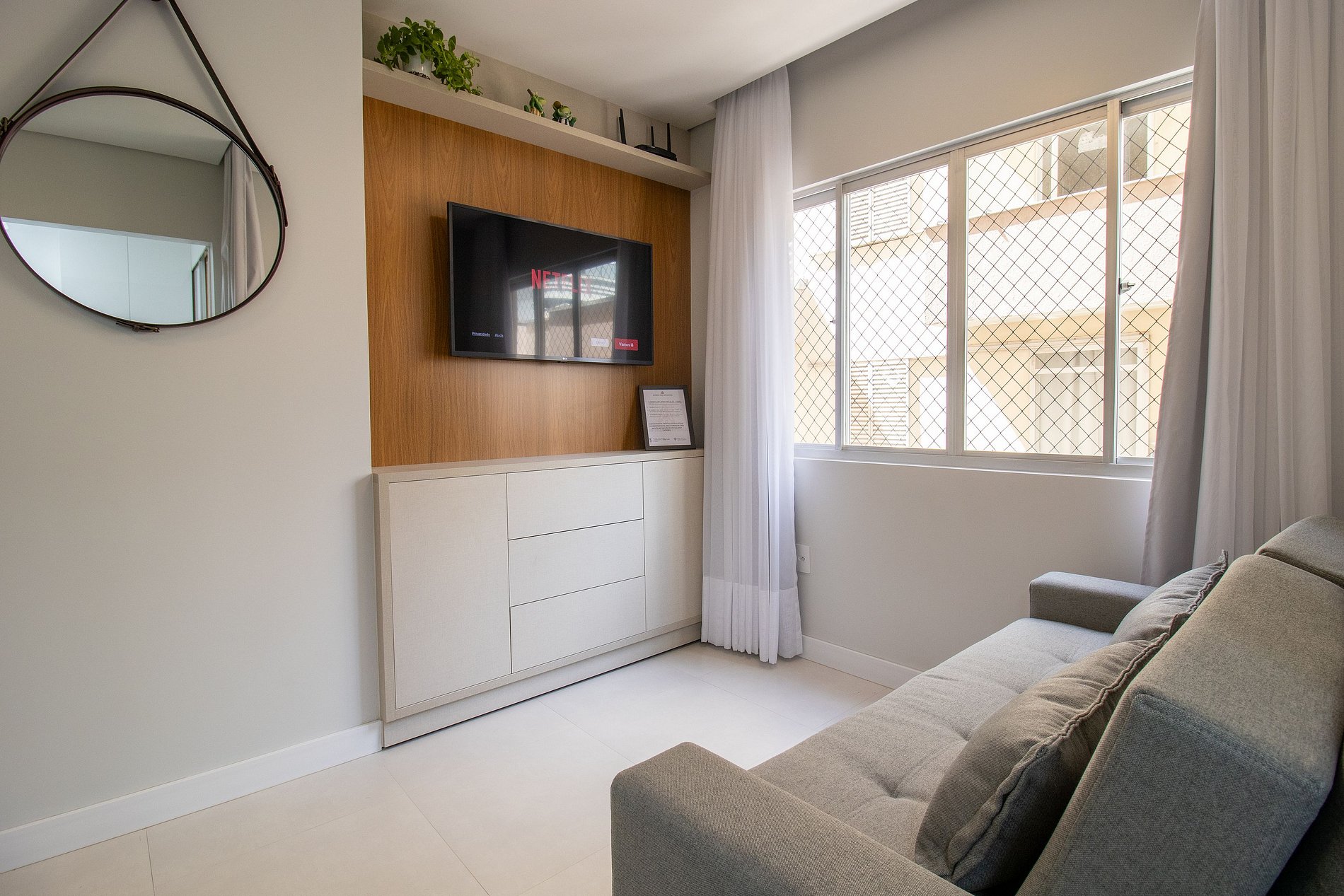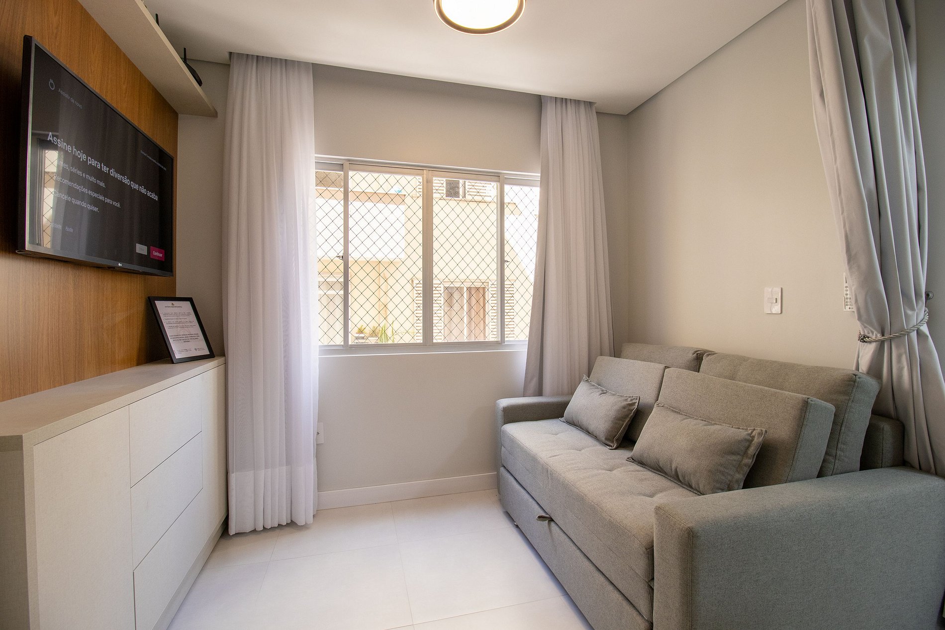 Internet wi-fi de boa velocidade própria do apartamento.