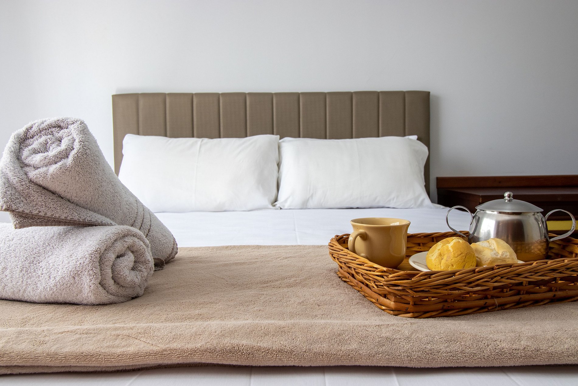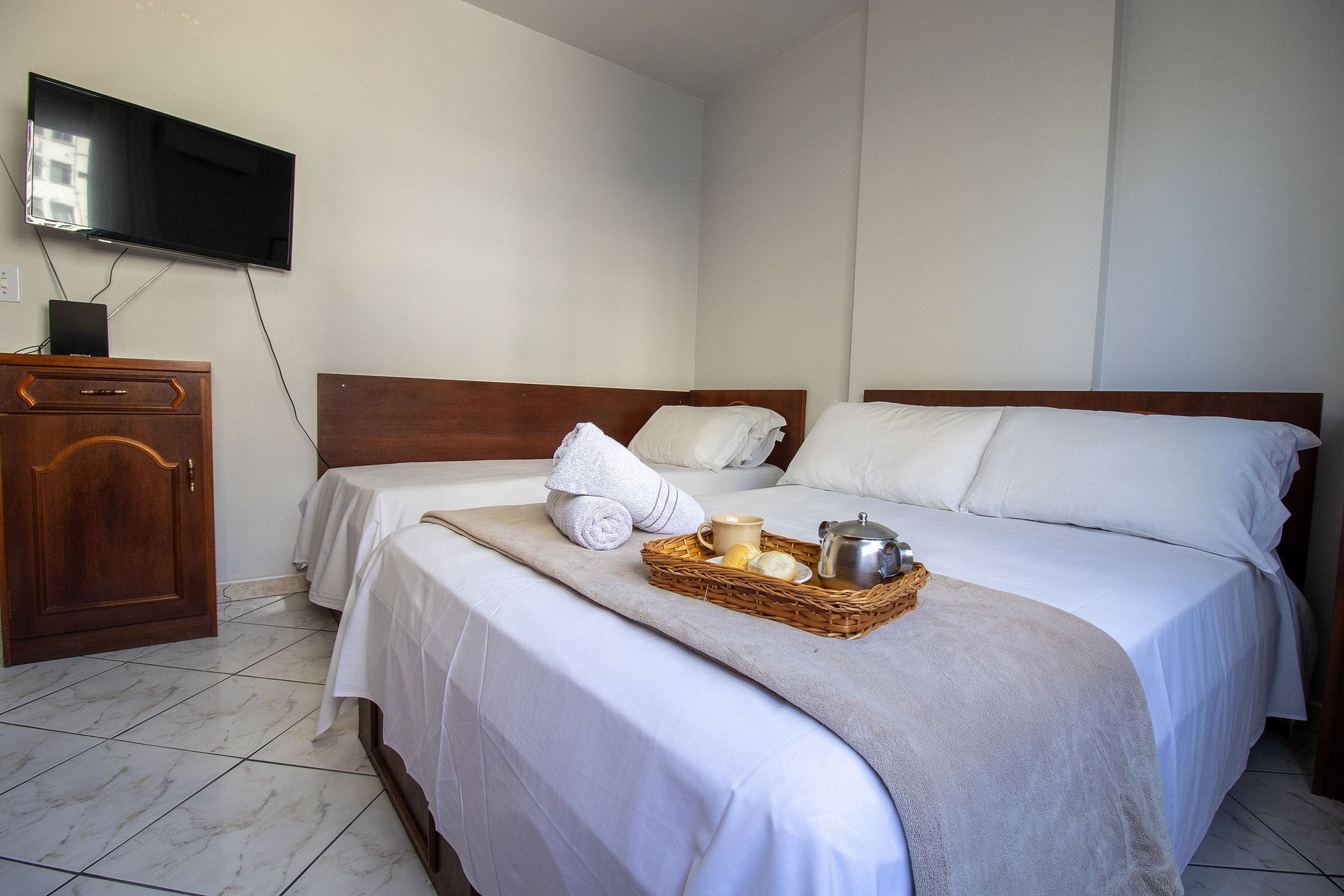 Disponibilizamos roupa de cama básica (lençol de elástico, sobre lençol e travesseiros com fronha) e uma toalha de banho por hóspede. Fornecemos um edredom para cada cama e uma manta de microfibra para uma das camas de solteiro, garantindo praticidade e conforto durante sua estadia.