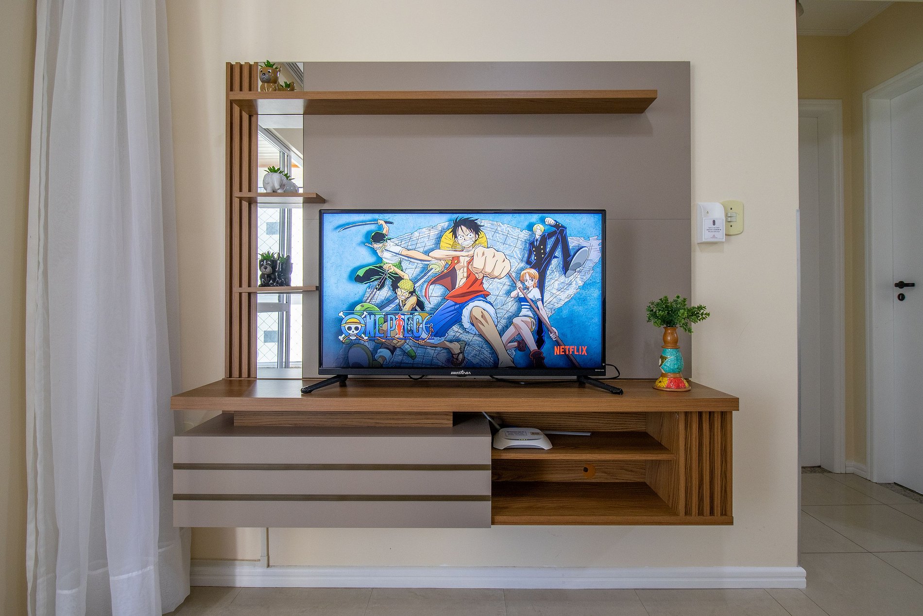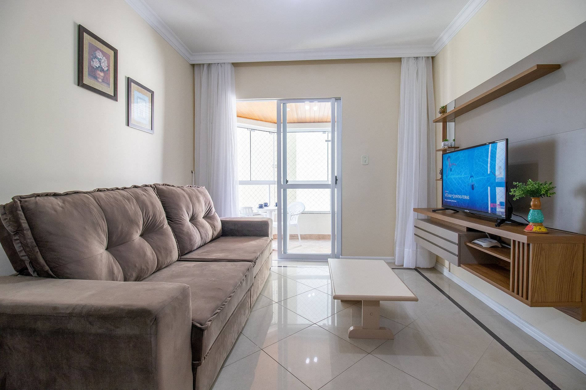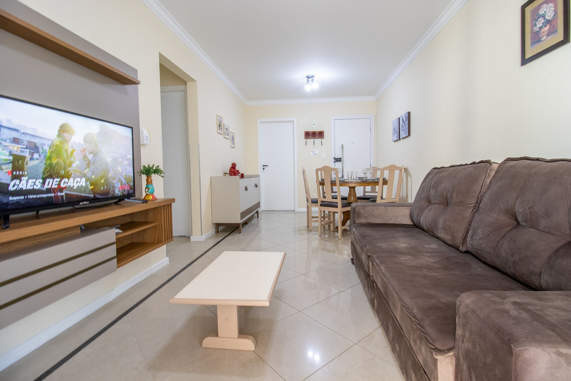 O espaço conta com internet wi-fi de 50mb própria do apartamento.