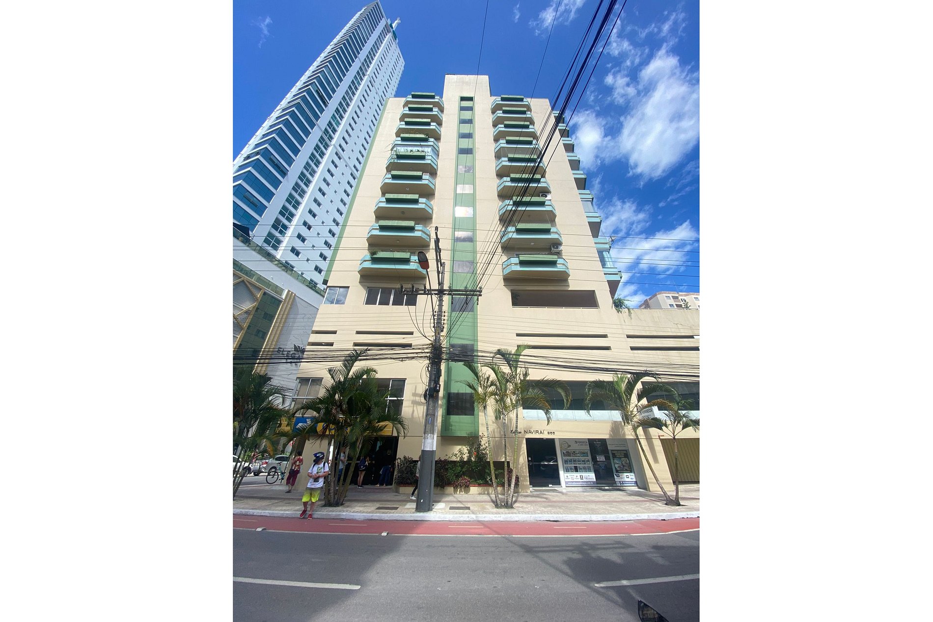 O Edifício Naviraí é localizado na Avenida Brasil, número oitocentos e cinquenta e cinco. Ele fica a cerca de três minutos andando do Shopping Atlântico e um minuto da areia da praia.