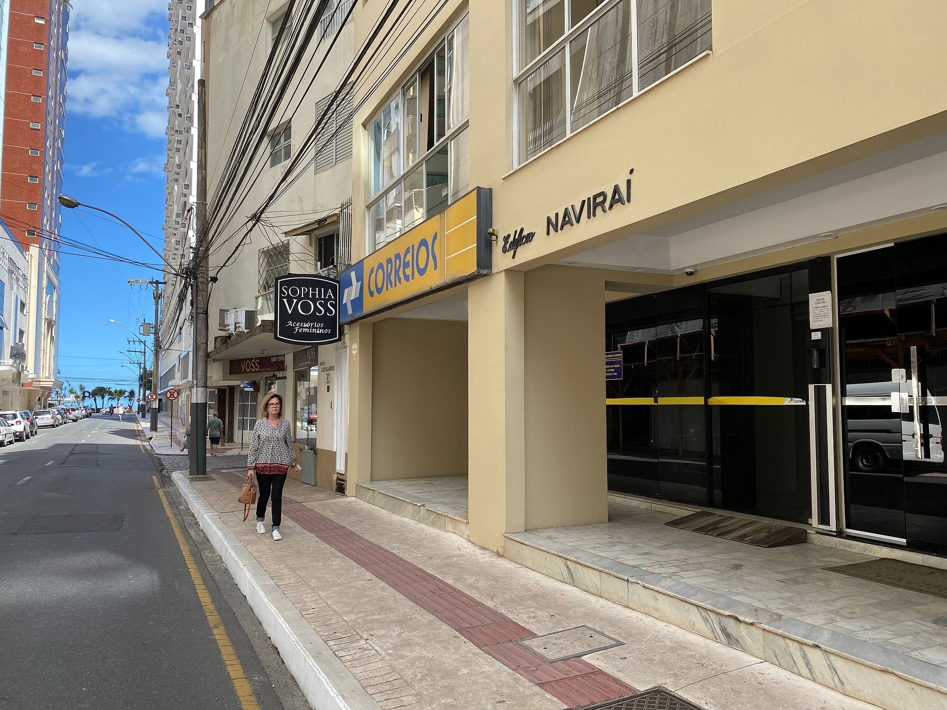 O Edifício Naviraí é localizado na Avenida Brasil, número oitocentos e cinquenta e cinco. Ele fica a cerca de três minutos andando do Shopping Atlântico e um minuto da areia da praia.