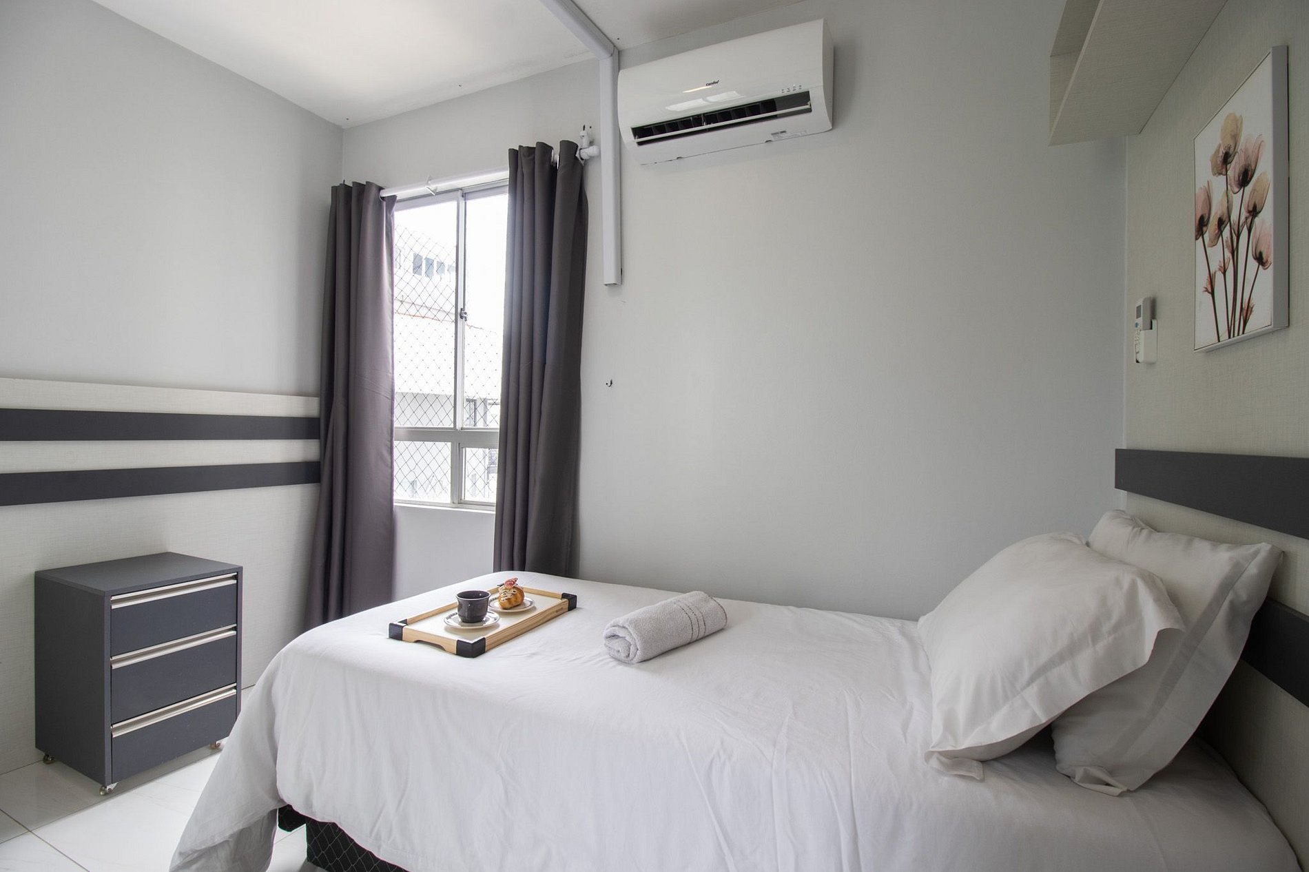 Ar condicionado nos dois dormitórios e na sala.
